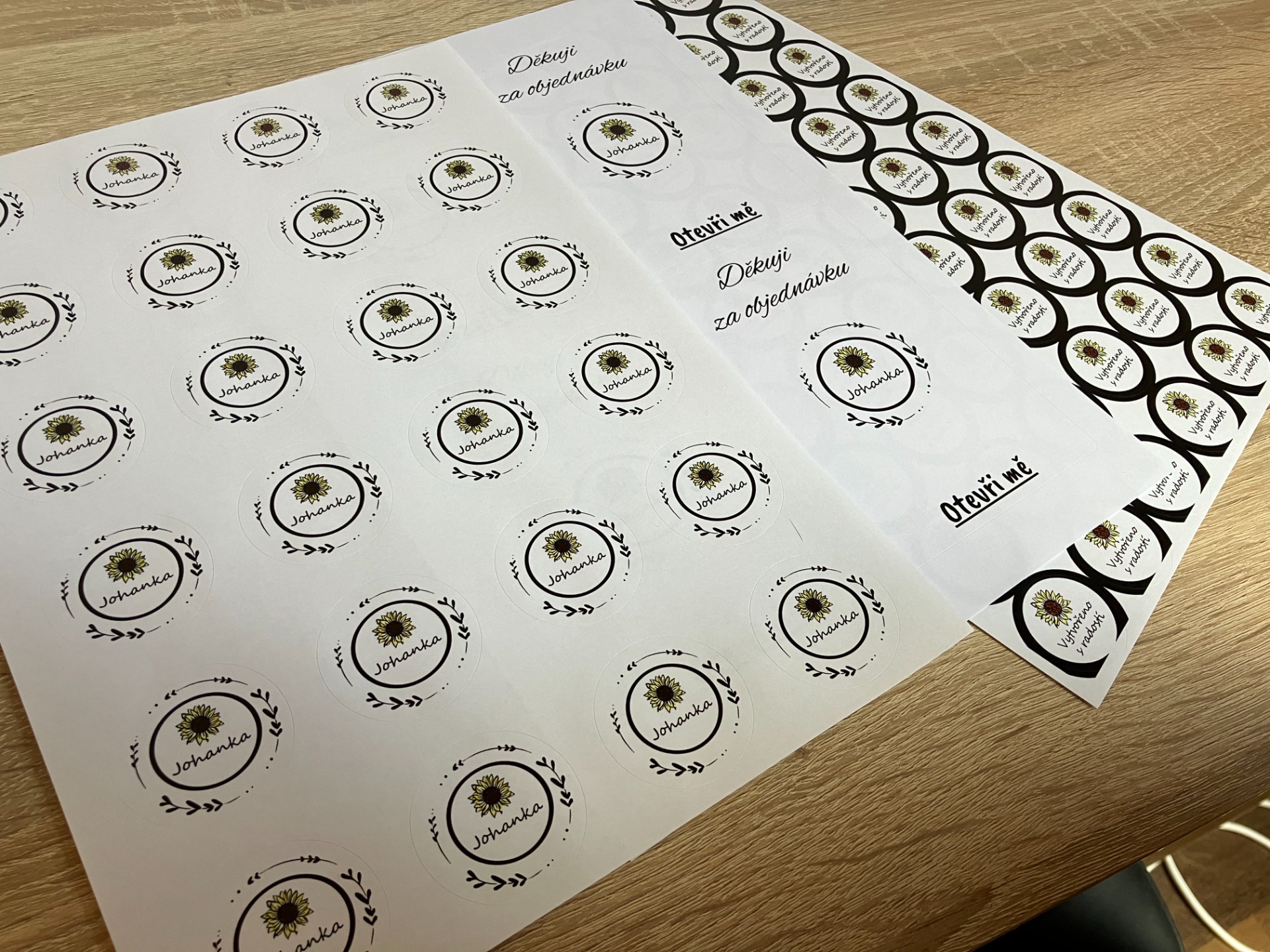 Všechny tyto věci si navrhuji sama a snažím se do všeho dát kus sebe a chci, aby tak celý výrobek byl ode mně a mohla jsem říct, že jsem to celé mohla dělat sama. Proto tímto chci naznačit, že je možné si i u mě nechat udělat grafické návrhy na samolepky, vizitky, děkovné kartičky a tak dále.