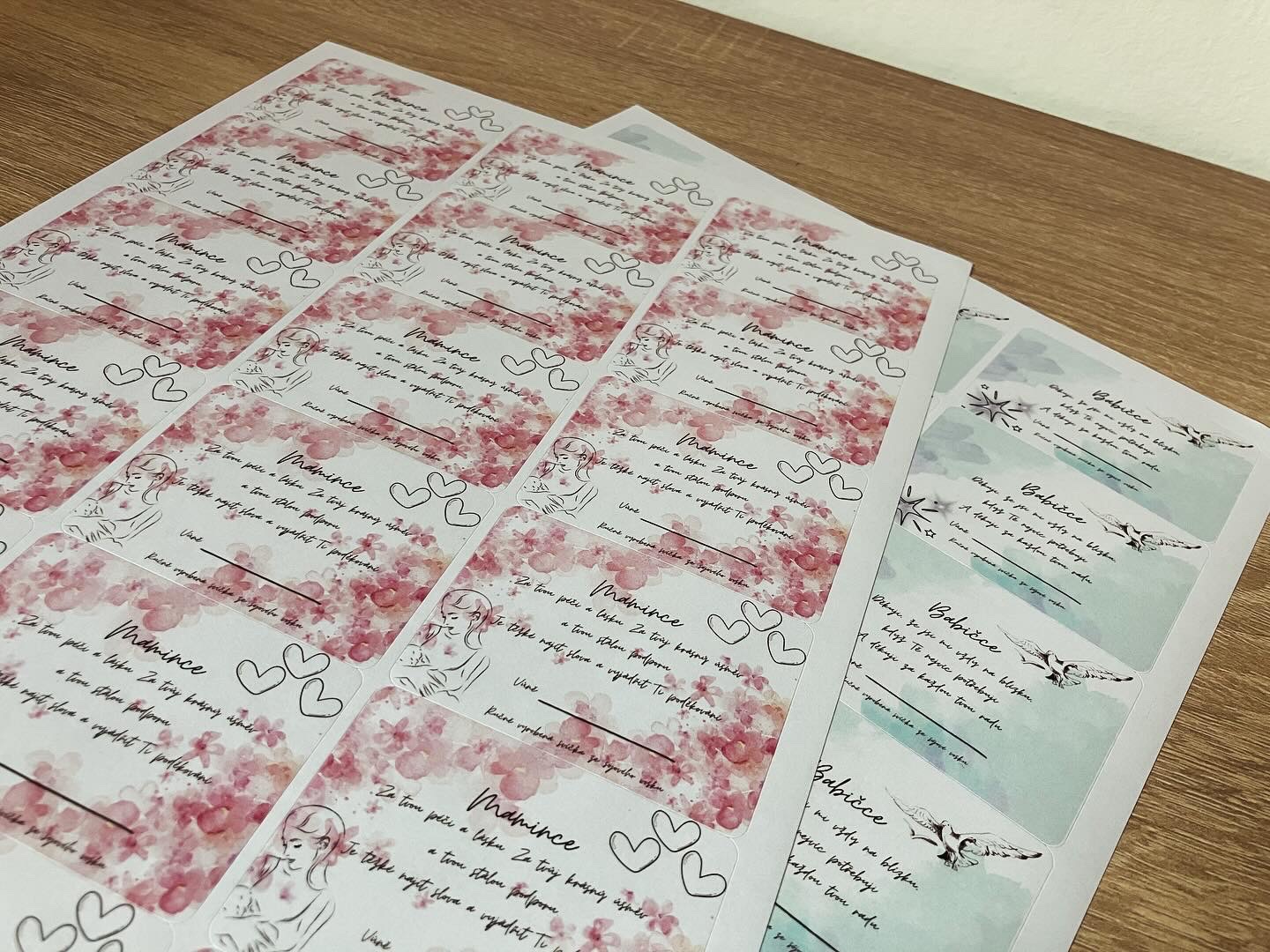 A samozřejmě jsem si i vymyslela, etikety kde je už předepsané věnování. Postupem času, bych ráda dělala i věnování na míru. Ale prozatím, je to pouze takhle. Ale i předepsané věnování udělá radost. Momentálně mám na svém skladíku, jen pro Maminku a Babičku.