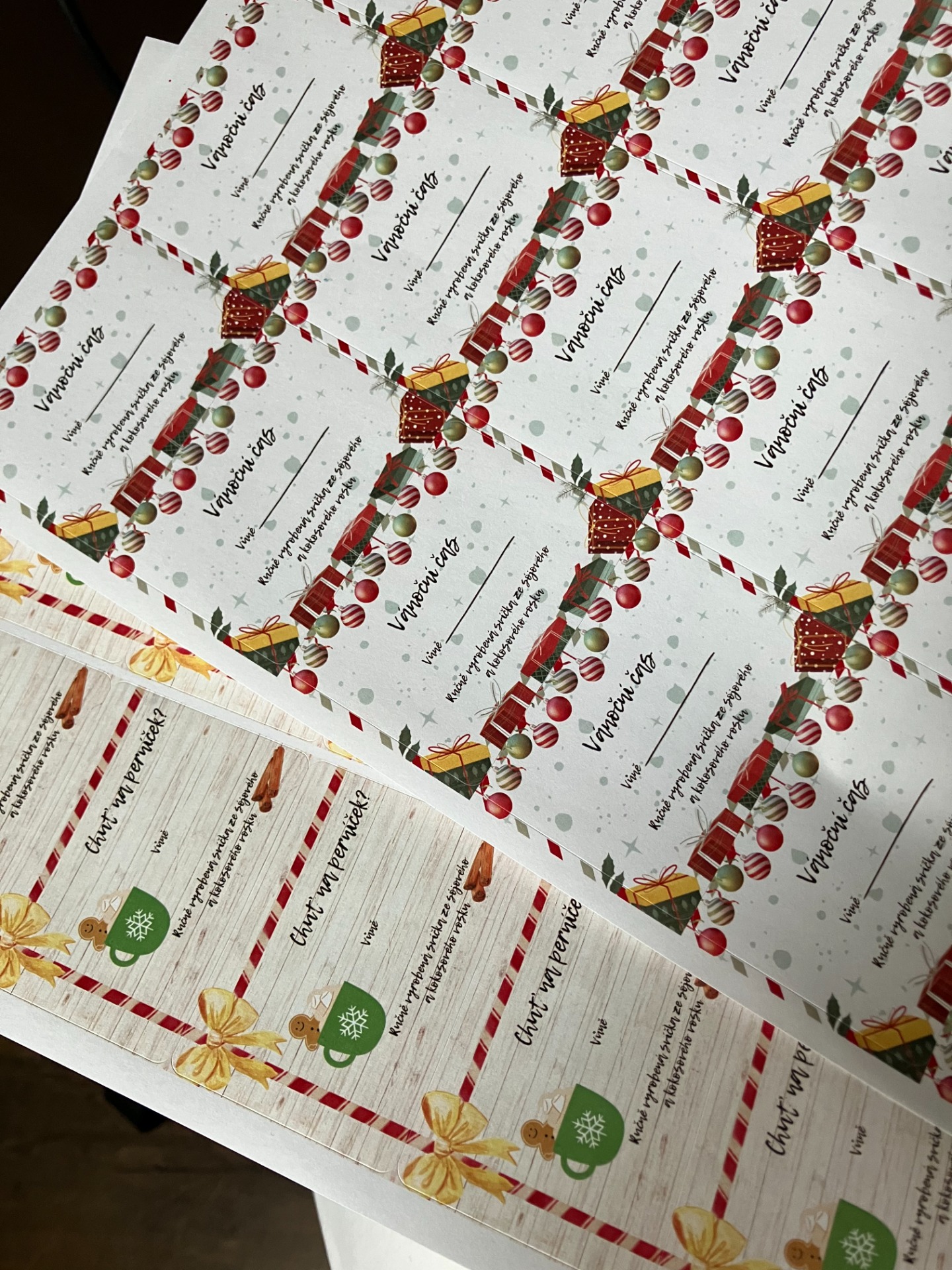 Už máme polovinu října a proto bylo důležité udělat vánoční etikety jak na klasické svíčky tak i na vonné vosky. Opět grafiku jsem si dělala sama a pak už jen poslat do tiskárny. Už jsem upustila od svých klasických motivů a proste nechala to odlišné stejně jako jsou Vánoce v celém roce. A zaslouží si jiný desing.